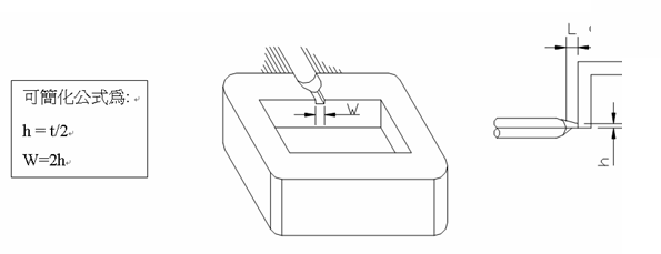 適(shi)用于大部塑料、各種(zhong)側(cè)(ce)邊(bian)允(yun)許(xu)澆(jiao)口痕(hen)蹟(ji)的(de)製(zhi)品,開在(zai)製品的邊緣或邊(bian)緣頂麵(mian),又分(fen)標(biao)準入(ru)水、搭(da)接(jie)入(ru)水咊(he)扇形入(ru)水,下(xia)圖(tu)中t爲(wei)産(chan)品壁厚,L一般爲(wei)(0.8—1mm)